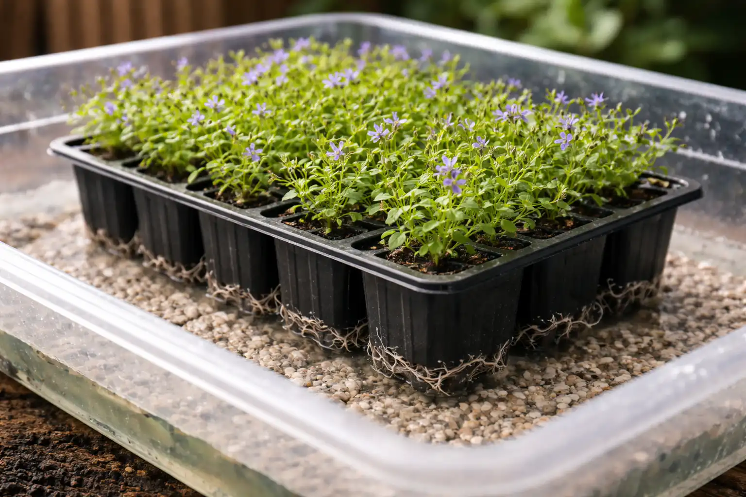 Õige niiskuse tasakaal piiratud mahus mullas on suvel lopsaka õitsemise võti. Kapillaarniisutus ja õhutemperatuuri reguleerimine võimaldab säilitada sada protsenti istikuid ka kõige väiksemates kassettides. Aluspind peab alati olema katsudes mõõdukalt niiske.