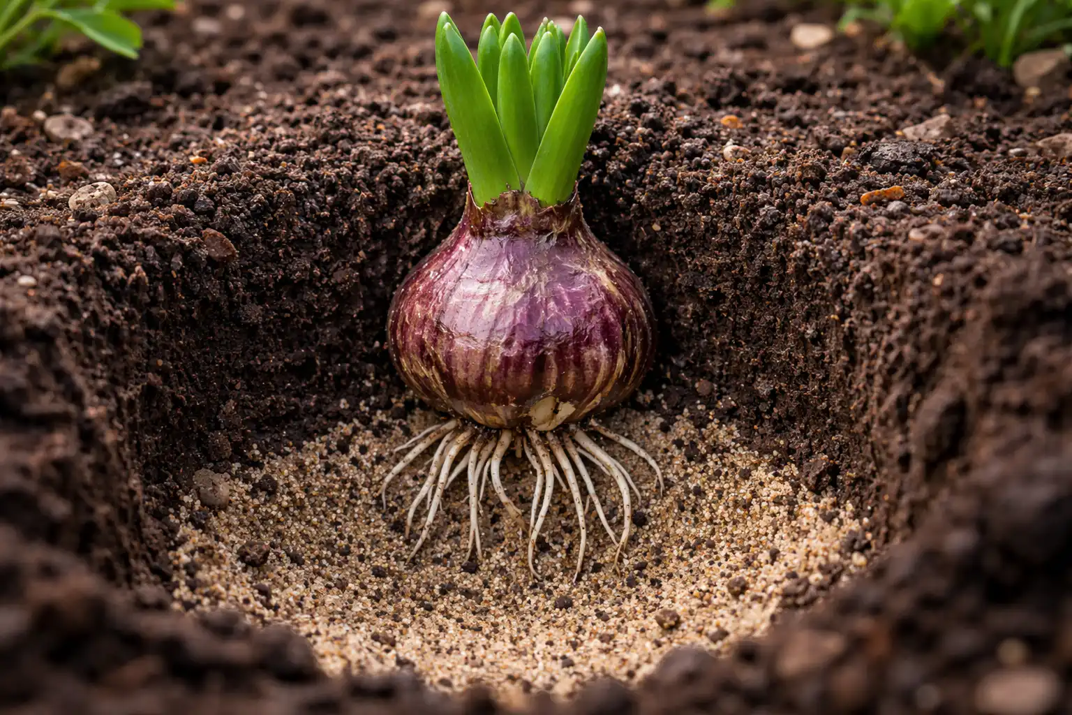• Valige ainult tihedad ja mehaaniliste vigastusteta sibulad. • Aiavormide optimaalne läbimõõt on alates viiest sentimeetrist. • Töötle istutusmaterjal kindlasti sisse fungitsiidid enne maasse kinnitamist. • Pidage meeles “kolme reeglit”: istutussügavus peaks olema võrdne sibula enda kolmekordse kõrgusega.