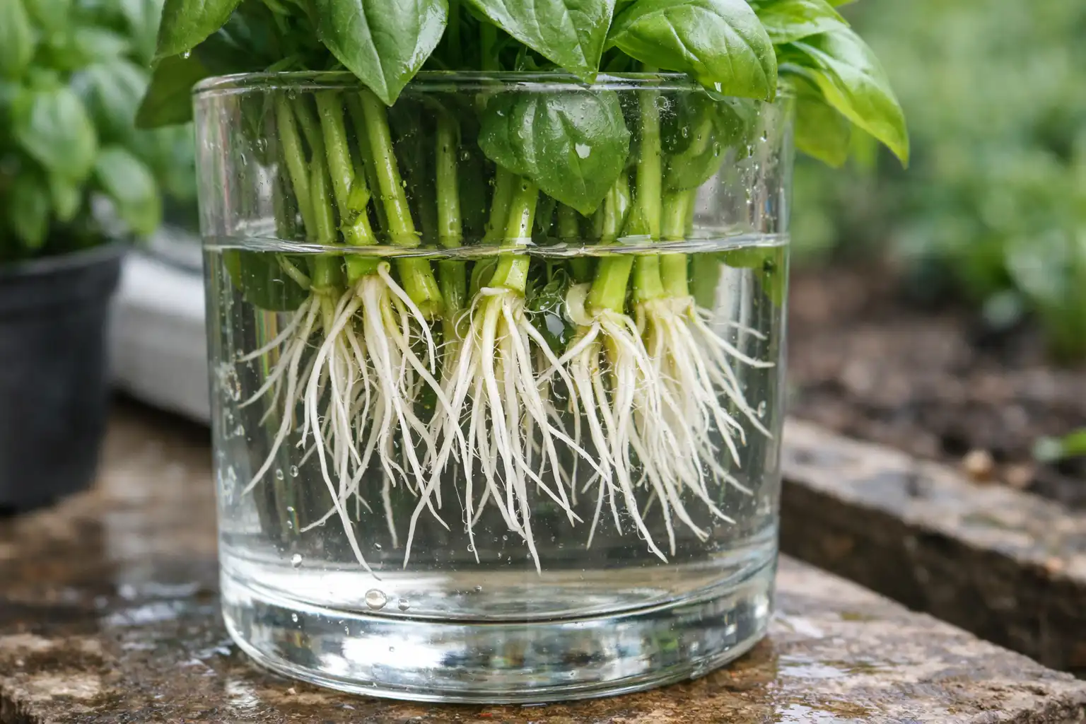 Tugevate taimede saamiseks sobib kõige paremini kombineeritud lähenemisviis. Ostke supermarketist üks värske hunnik tugevate vartega basiilikut. Lõika pealsed umbes 10 cm pikkuseks ja aseta need vette. 5–7 päeva pärast ilmuvad võimsad valged juured ja taim on valmis istutamiseks avamaale või potti.
