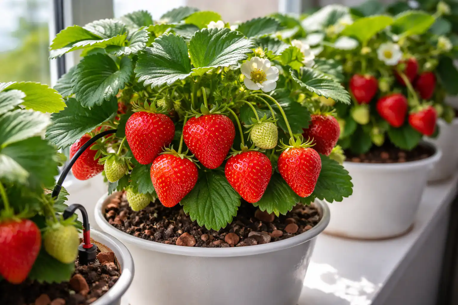 Aknalaual terved maasikapõõsad ei ole mitte ainult vitamiinide allikas, vaid ka suurepärane sisekujundus.