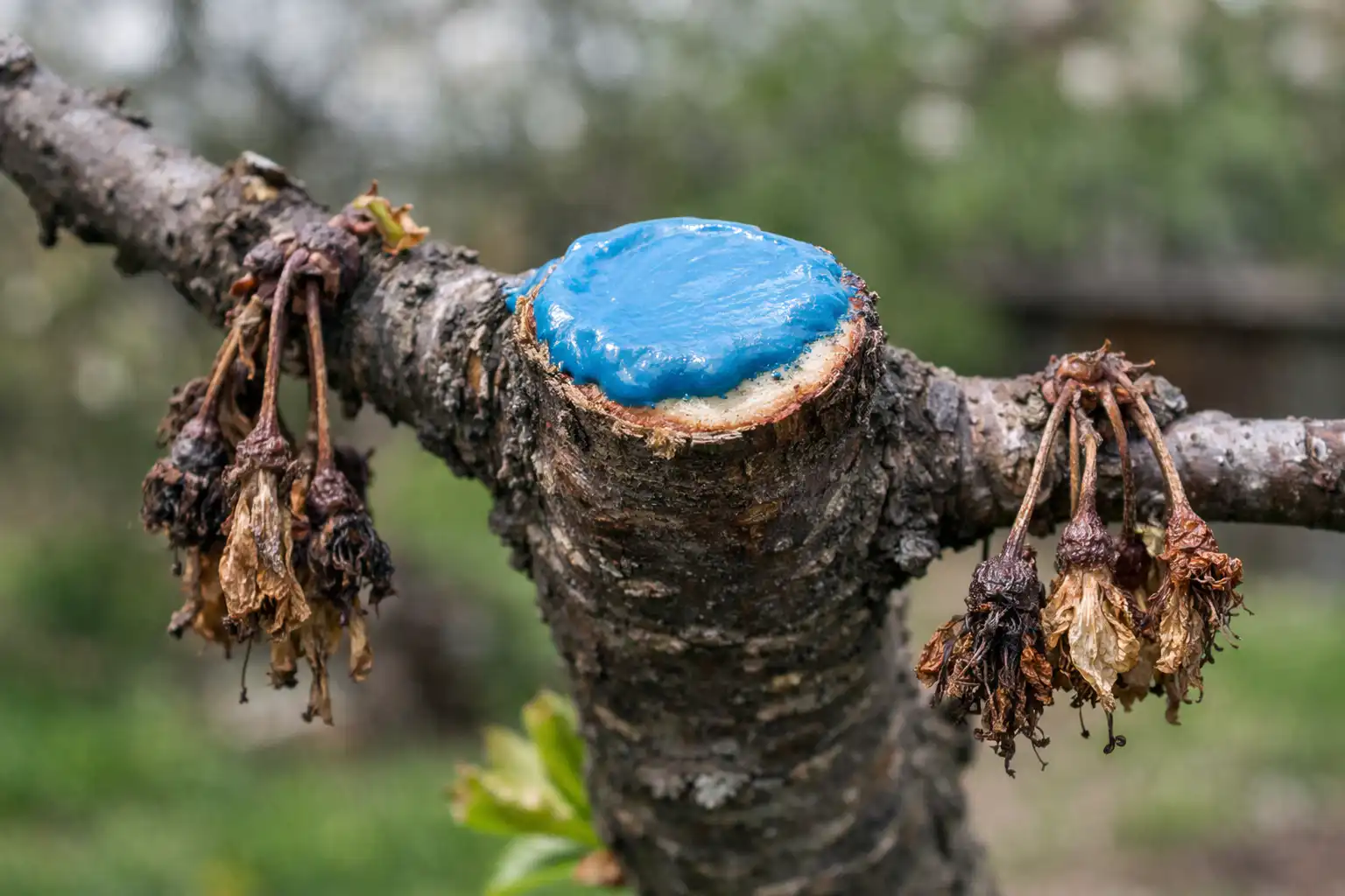 Kas oksa on võimalik päästa, kui see on juba kuivama hakanud? Ei, kahjustatud osa tuleb ainult eemaldada, kuna seeneniidistik on veresooned juba ummistanud ja seda võrse osa pole võimalik päästa.