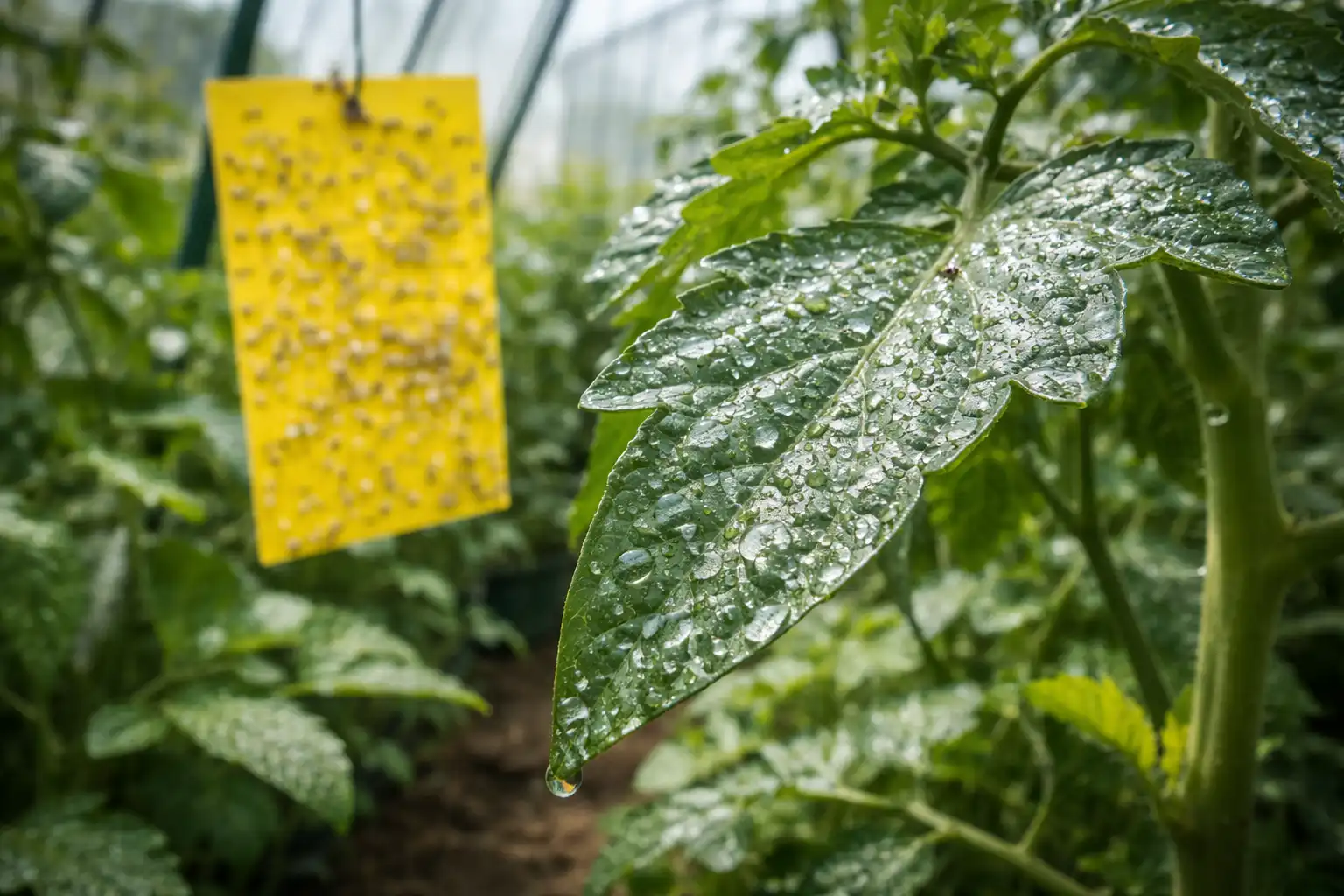 Määra kollane liimilõksud taimede kõrval. Värv tõmbab täiskasvanuid ligi ja nad kleepuvad pinnale.