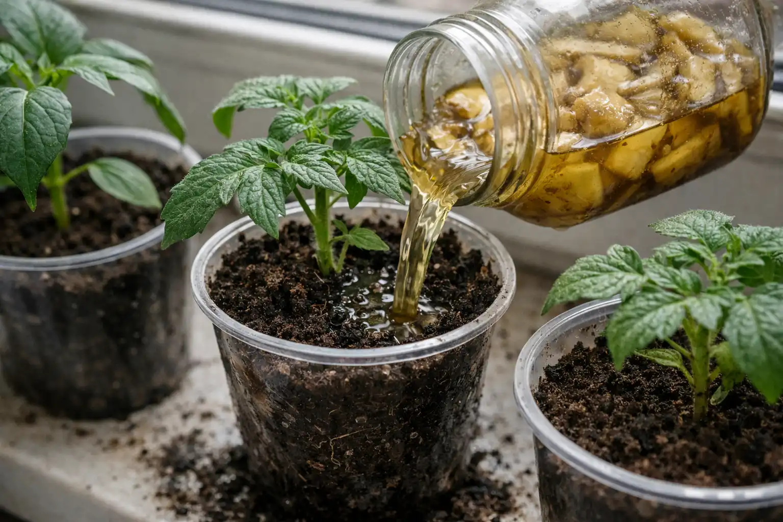 Banaanivesi on eriti kasulik Solanaceae põllukultuurid Pärast kastmist tugevneb vars märgatavalt ja lehed omandavad rikkaliku tumerohelise värvi.