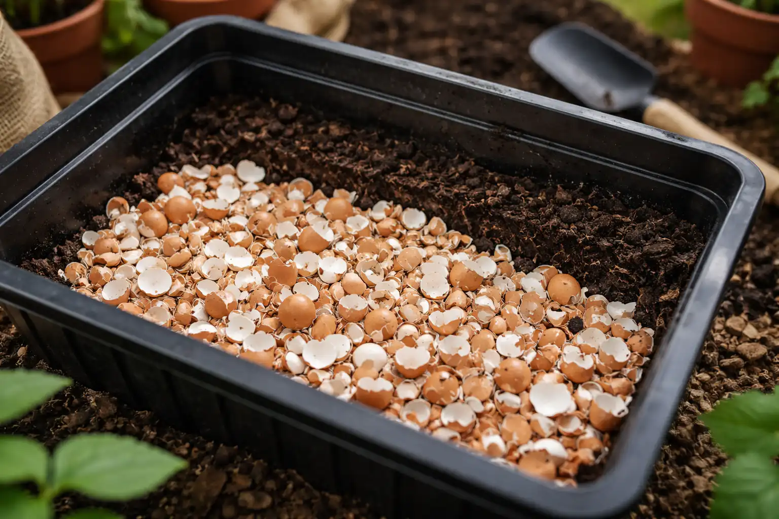 Paljud suvised elanikud teevad selle väärtusliku materjali ära viskamise vea, kuigi see saab oma rolliga tõhusalt hakkama õhutamine. Suured kestafraktsioonid loovad anuma põhja vajalikud tühimikud, takistades mulla hapestumist ja aidates juurtel “hingata”.