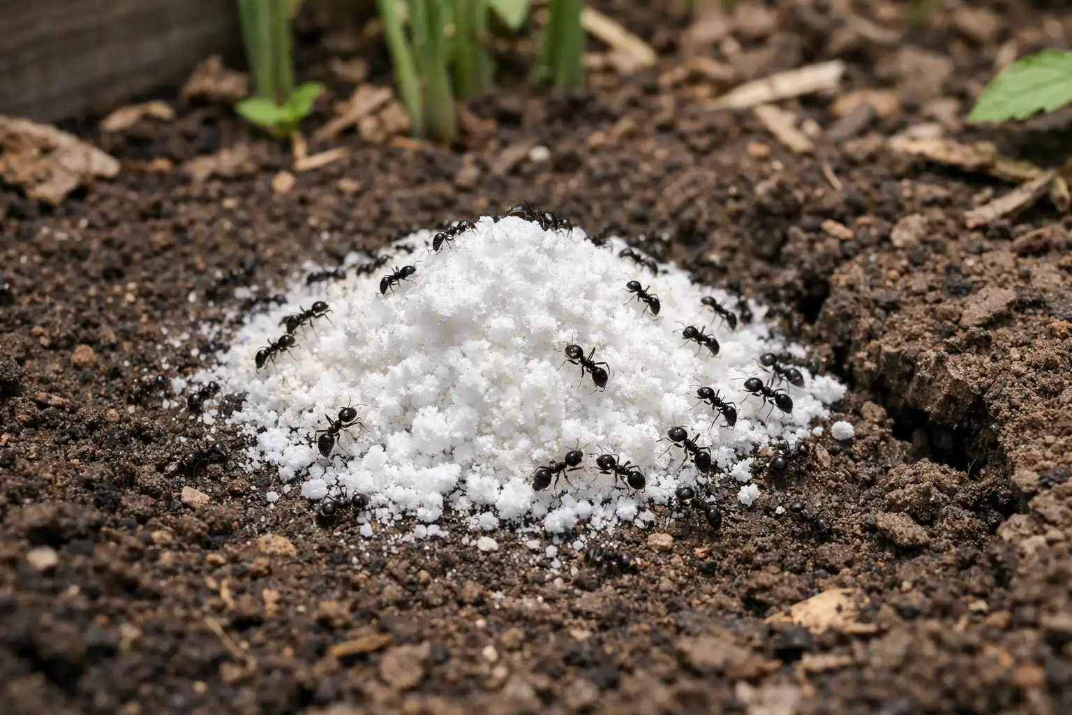 Kui sipelgapesa asub ridade vahel või avatud aladel, kus pole õrnaid istutusi, võite seda kasutada lahendus. See aitab hävitada sügaval maa all asuva kuninganna.