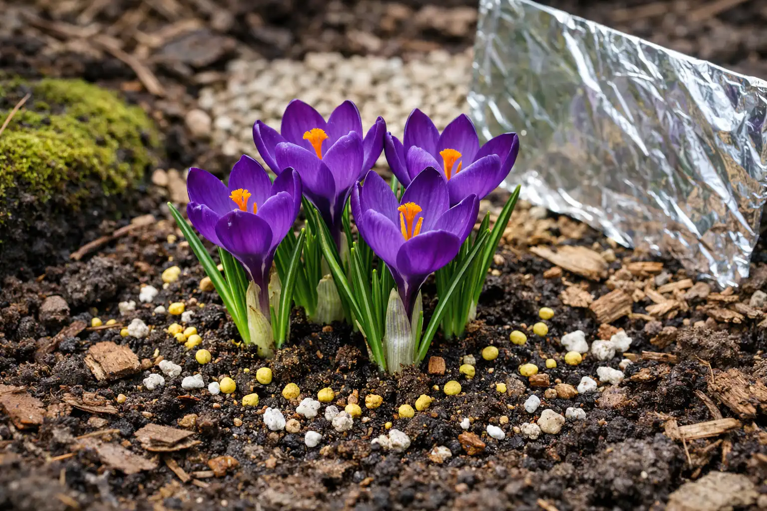 Salajane nüanss: kui soovite siiski puude all krookusi näha, valige ainult tüveringi lõunapoolne külg ja kasutage kindlasti jämedast liivast drenaaži, mille kiht on vähemalt 2 cm otse sibula all.