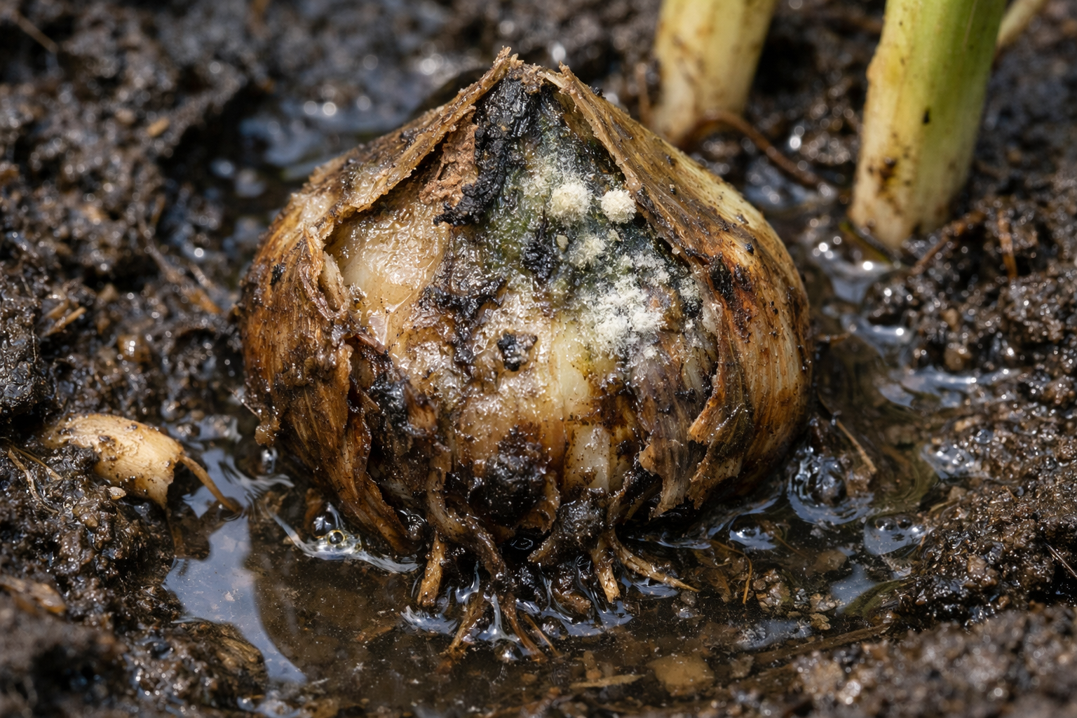 Kui muld on pidevalt märg, siis see laguneb gaasivahetus juurtsoonis. Tulbisibul on sisuliselt kokkusurutud pung koos toitainetega, mis on seennakkuste suhtes äärmiselt tundlik. Kui ületäitumine algab protsessiga anaeroobne mädaneminemis hävitab ennekõike soomuste sees oleva õienupu.