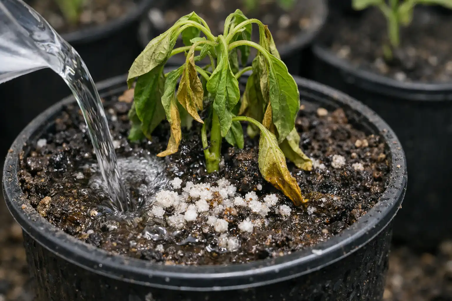 “Salanüanss: kui näete, et paprika on kohe pärast väetisega kastmist närbuma hakanud, ärge oodake hommikuni. Asetage potid kohe sooja veega kaussi, et drenaažiavade kaudu substraadist liigsed soolad “pestud”. See on ainus reaalne võimalus kasvupunkti päästa.”