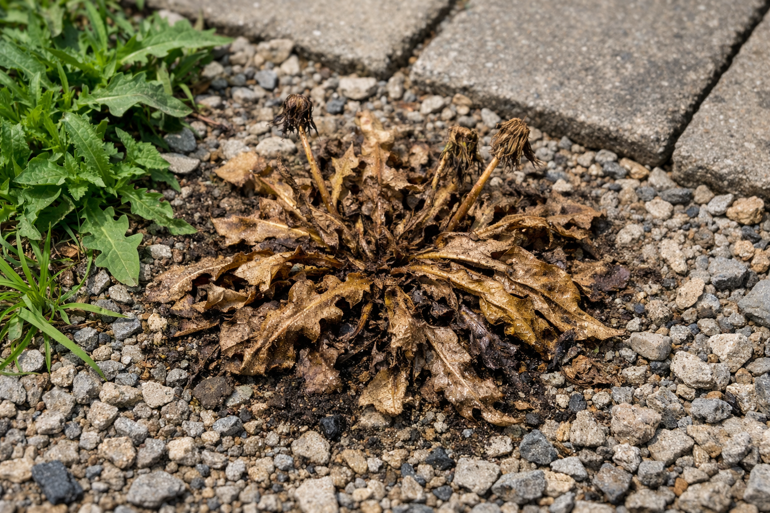 Kui umbrohi on juba läbi plaatide või teeradadel oma teed teinud, kasutan võimsat omatehtud segu. See toimib kiiresti ja ei mürgita mulda kemikaalidega mitu aastat.