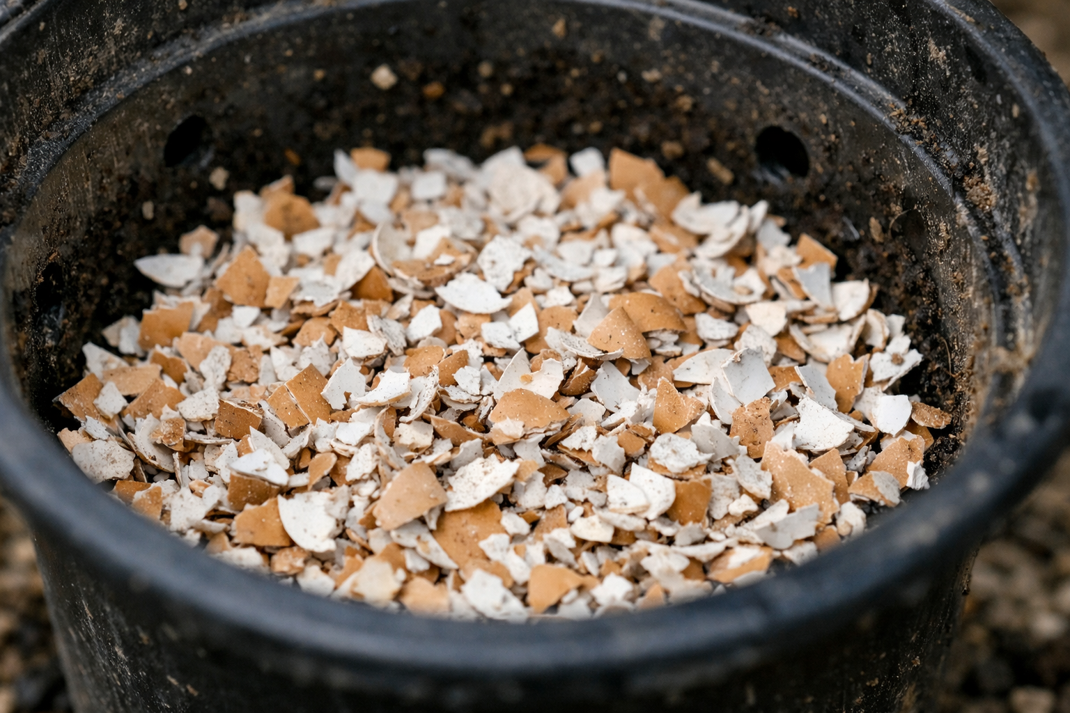 Kevadine orgaaniliste jääkide kasutamine on eriti oluline taseme suhtes tundlike põllukultuuride puhul kaltsium. Poti põhja asetades eralduvad kestad aeglaselt kasulikke aineid, mis välistab üleannustamise ohu.