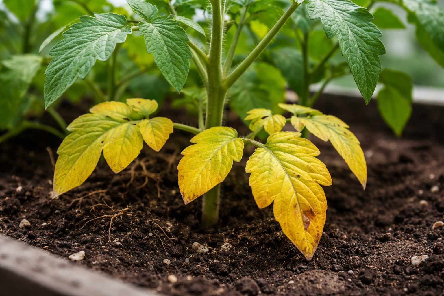 Kui tomatil puudub toitaine, lülitab see sisse ellujäämisrežiimi. Taim võtab võimust lämmastik ja muud liikuvad elemendid vanadest alumistest lehtedest, et toetada apikaalset kasvu. See on loomulik energia ümberjaotamise protsess, kuid kui seda ei kontrollita, kaotate kogu põõsa.
