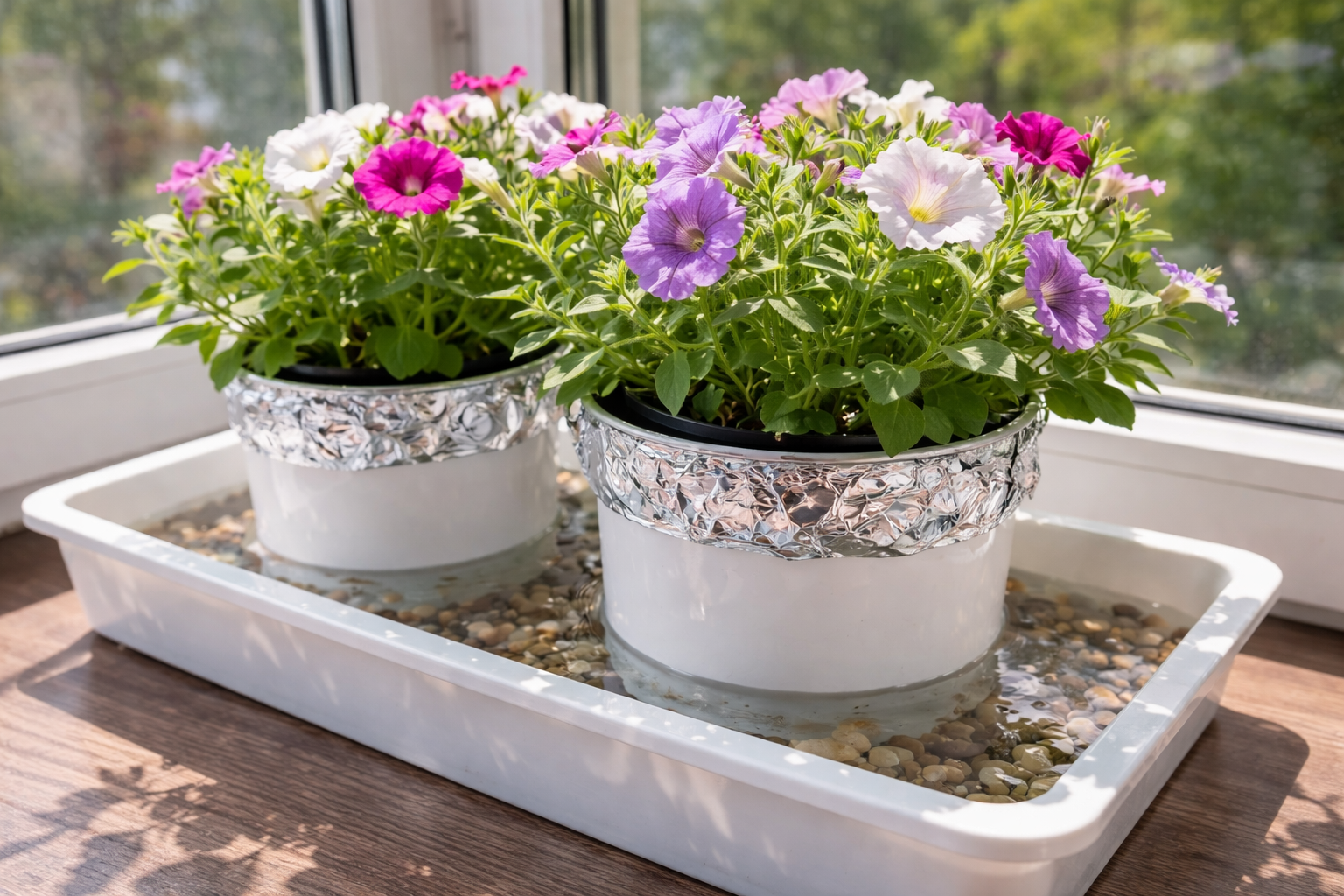 Õiged temperatuuritingimused ja niiskuse reguleerimine tagavad petuuniate lopsaka õitsemise kogu hooaja vältel.