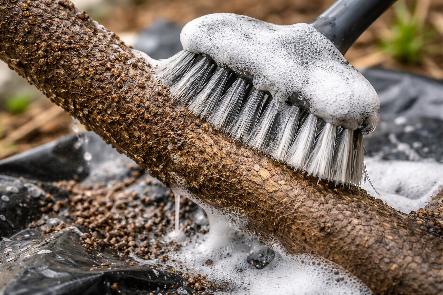 Efektiivsuse peamine saladus seisneb koore eeltöötlemises tõrvaseebist saadud paksu vahuga, mis enne puhastamist kahjurite kestad pehmendab.