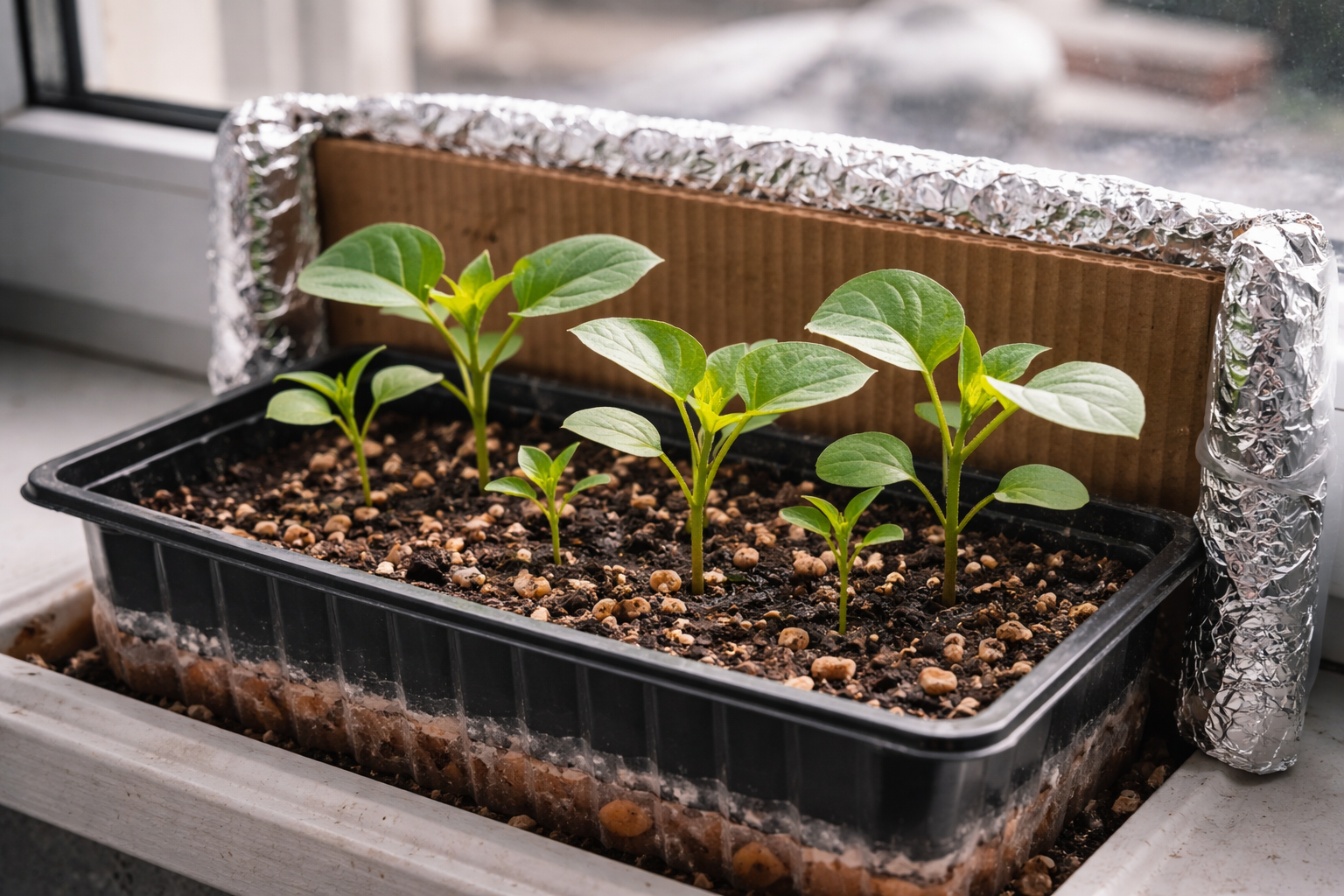Põhja usaldusväärseks isoleerimiseks asetage seemikukonteinerite alla vahtplast.